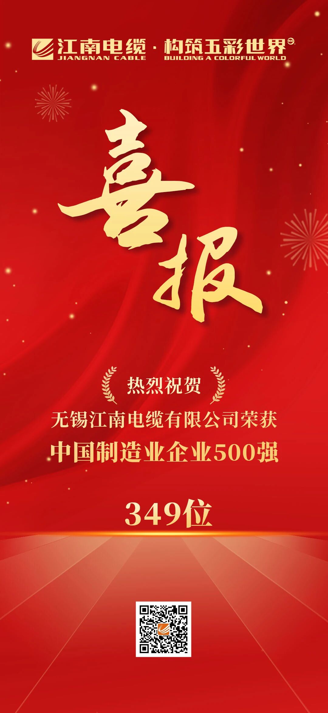 【喜報】江南電纜榮獲2025中國制造業(yè)企業(yè)500強!